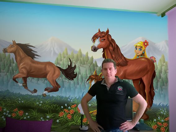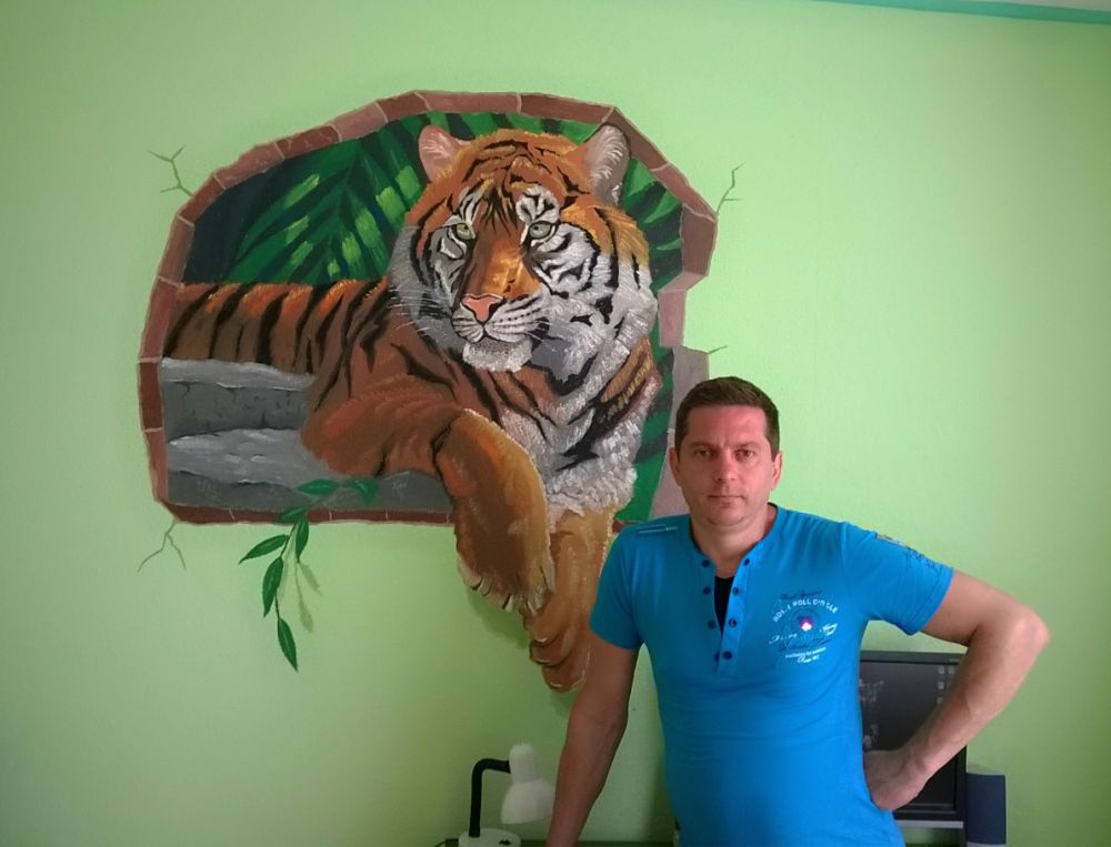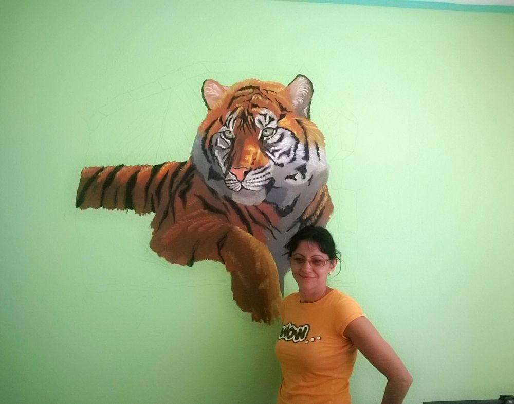 A képeimet hagyományos olajfestékkel készítem, aminek a száradási ideje 1-2 nap. A színek erőteljesek és tartósak. Aki szeretné gyermeke vagy saját szobáját egyedivé, különlegessé tenni, akkor jó helyen jár. A munka ideje rövid, bár ez sok mindentől függ (hány figura van a képen, a mérettől stb). Viszonyításnak a tigris kép egy nap alatt készült el. Igaz reggeltől estig folyt a munka.